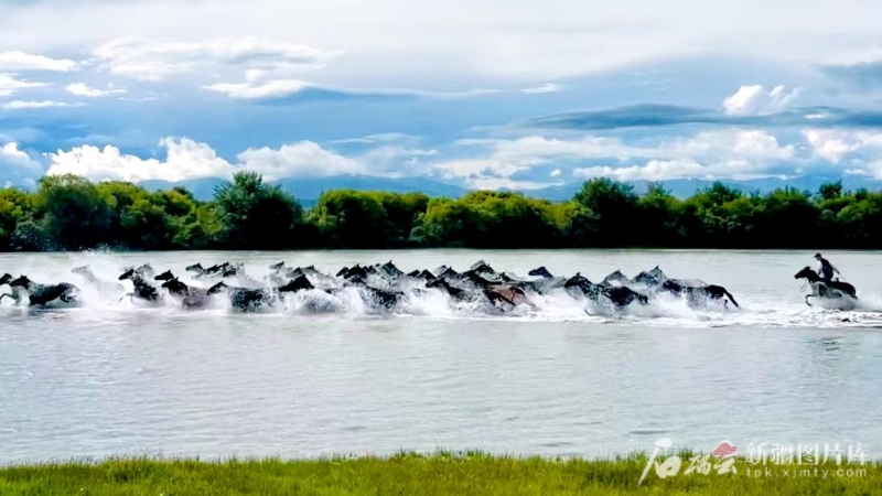 昭苏县“天马浴河”表演现场。图片由新疆马业协会提供