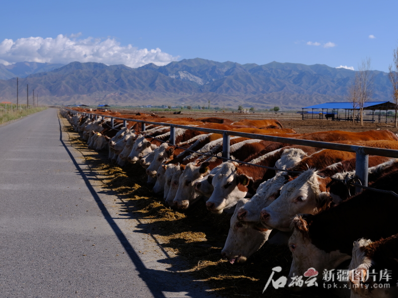在昌吉国家农业高新技术产业示范区,一座座轻钢结构牛舍整齐排列,自动温控系统保持室内恒温,粪污处理设备将排泄物转化为有机肥,牛“过”上了现代化生活。